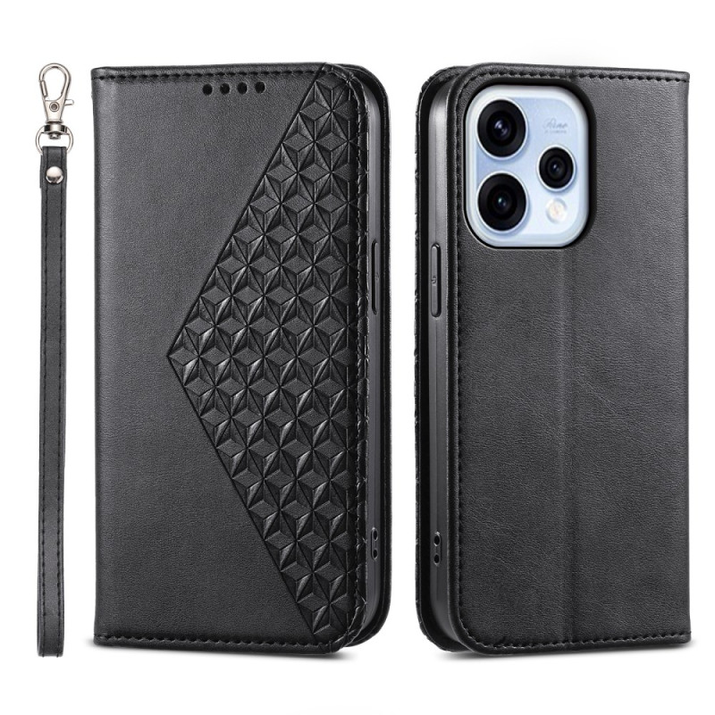Schützen Sie Ihr Oppo Reno 15 5G elegant mit dieser Brieftasche aus strukturiertem PU-Leder. Das raffinierte Design mit Rautenmuster bietet doppelten Schutz und verfügt über Karten- und Bargeldfächer. Inklusive Handschlaufe.
