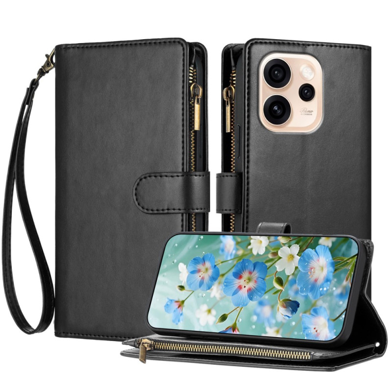 Multifunktionale Brieftasche aus PU-Leder für Oppo Reno 15 5G. Elegantes Design mit 8 Kartenfächern, Reißverschlussfach und integriertem Ständer. Verstärkter Stoßschutz mit sicherem Magnetverschluss und abnehmbarer Handschlaufe zum einfachen Tragen.