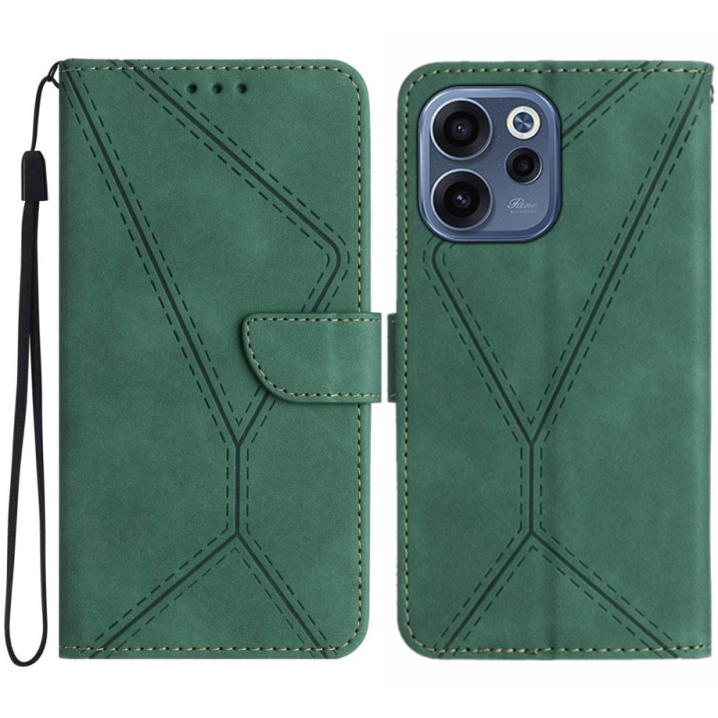 Elegante Klapphülle für das Oppo Reno 15 F 5G mit Soft-Touch-Lederstruktur und aufgedruckten Linien. Umfassender Schutz mit stoßfesten Polstern an den Ecken, verstellbarer Halterung für freihändiges Betrachten und im Brieftaschenstil mit Kartenschlitzen und Handschlaufe.