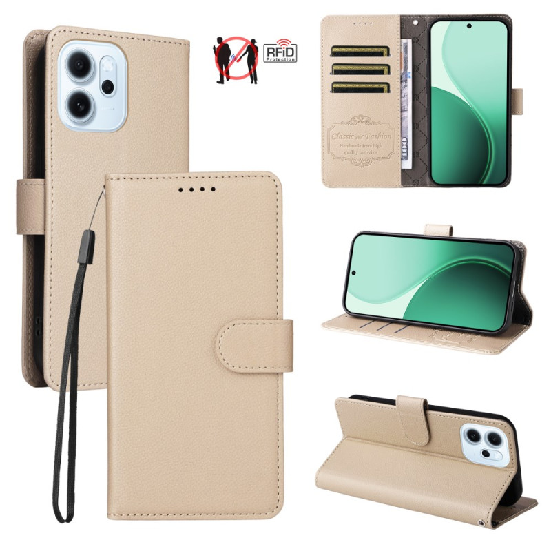 Schützen Sie Ihr Oppo Reno 15 F 5G elegant mit dieser multifunktionalen Brieftasche. Ausgestattet mit der RFID-Sperrtechnologie sichert es Ihre Bankkarten vor betrügerischem Auslesen.