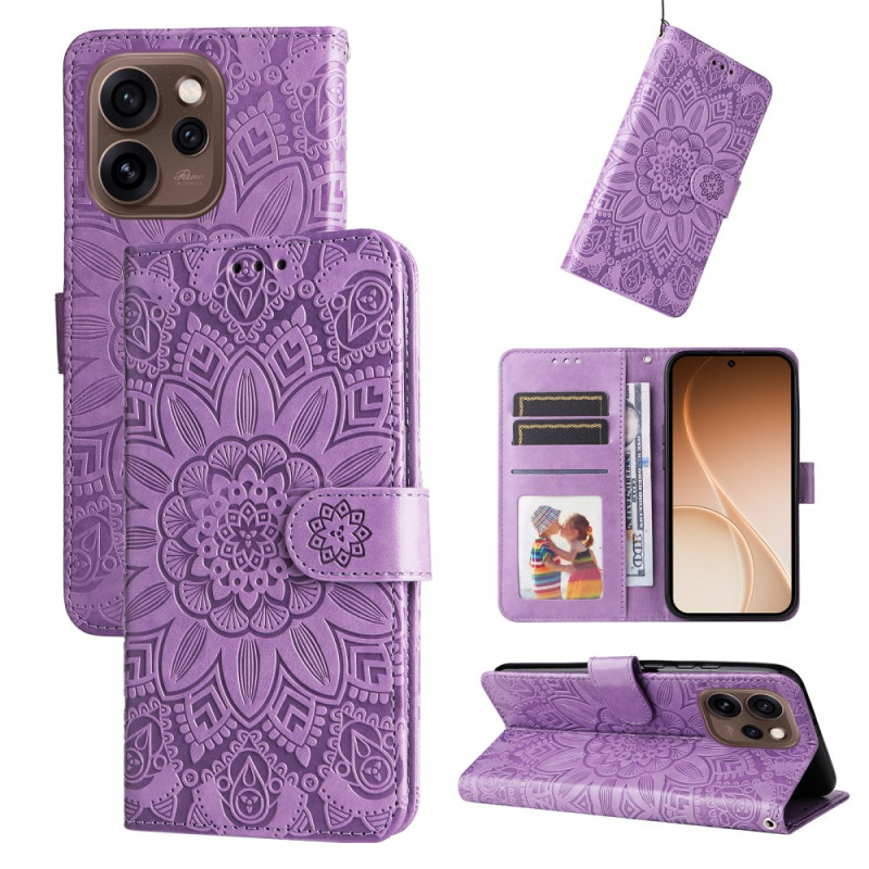 Schützen Sie Ihr Oppo Reno 15 Pro 5G elegant mit dieser Brieftasche aus Premium-PU-Leder. Das eingravierte Sonnenblumenmotiv verleiht der Tasche einen raffinierten Touch, während die Kartenfächer und die Ständerfunktion praktische Alltagstauglichkeit bieten.