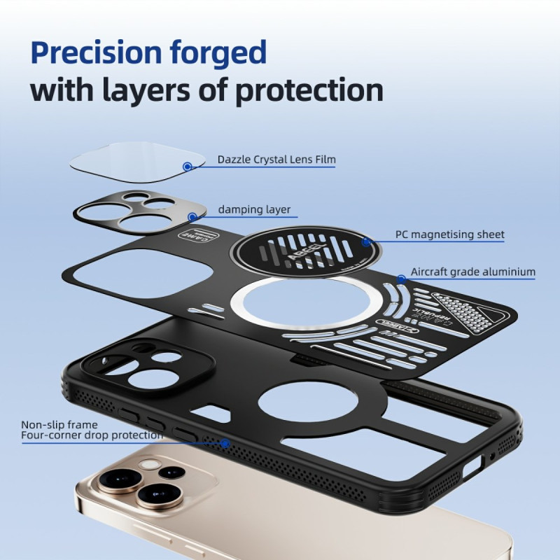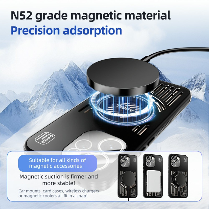 Magnetische Hochleistungsschale für Oppo Reno 15 Pro 5G mit fortschrittlichem Wärmeableitungssystem. Innovatives hohles Design für eine optimale Luftzirkulation. Integrierter N52-Magnetring für eine stabile Befestigung. Vollständiger Schutz mit stoßdämpfenden Polstern an den Ecken.