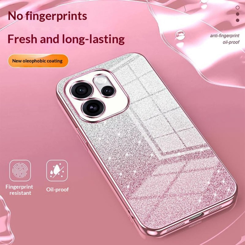 Schützen Sie Ihr Oppo Reno 15 Pro 5G elegant mit dieser TPU-Hülle mit glitzerndem Verlaufsfinish. Das glamouröse Design vereint robusten Schutz mit eleganter Ästhetik. Die Hülle ist leicht und eng anliegend und bietet perfekten Zugriff auf alle Funktionen.