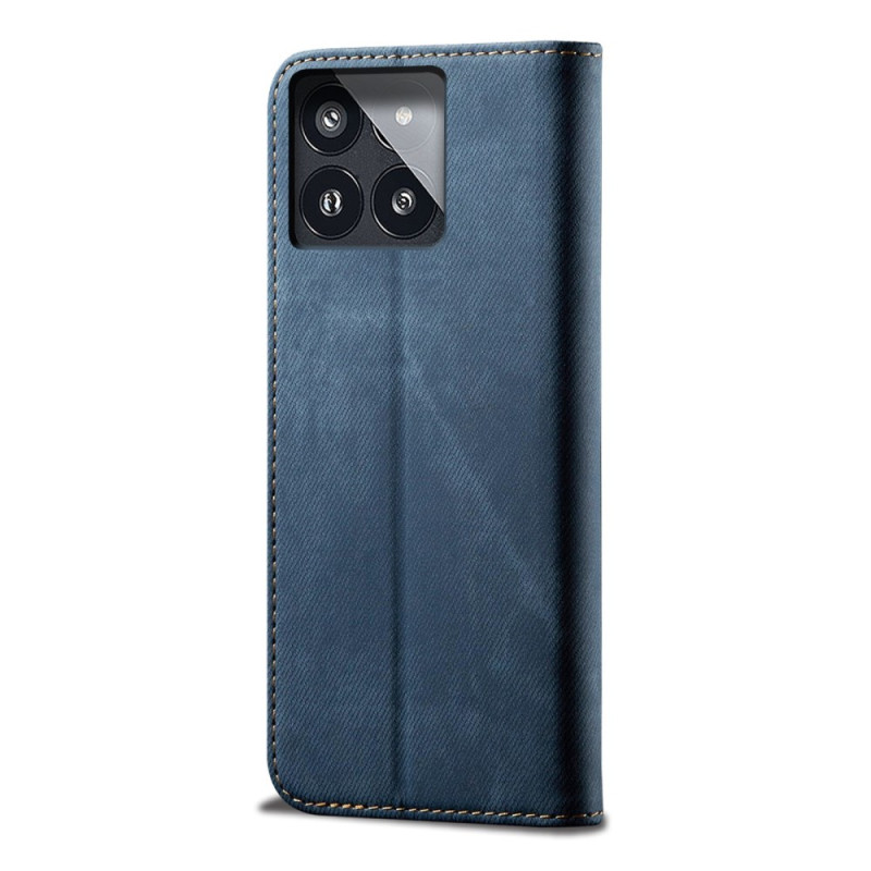 Entdecken Sie unser Portemonnaie-Etui aus Kunstleder mit einer Textur aus Jeansstoff.