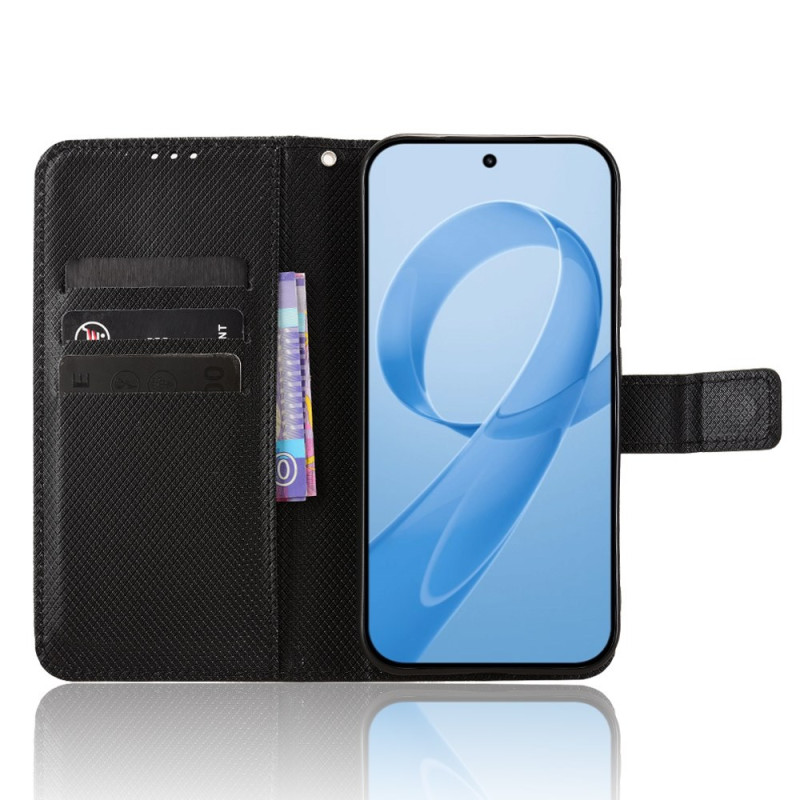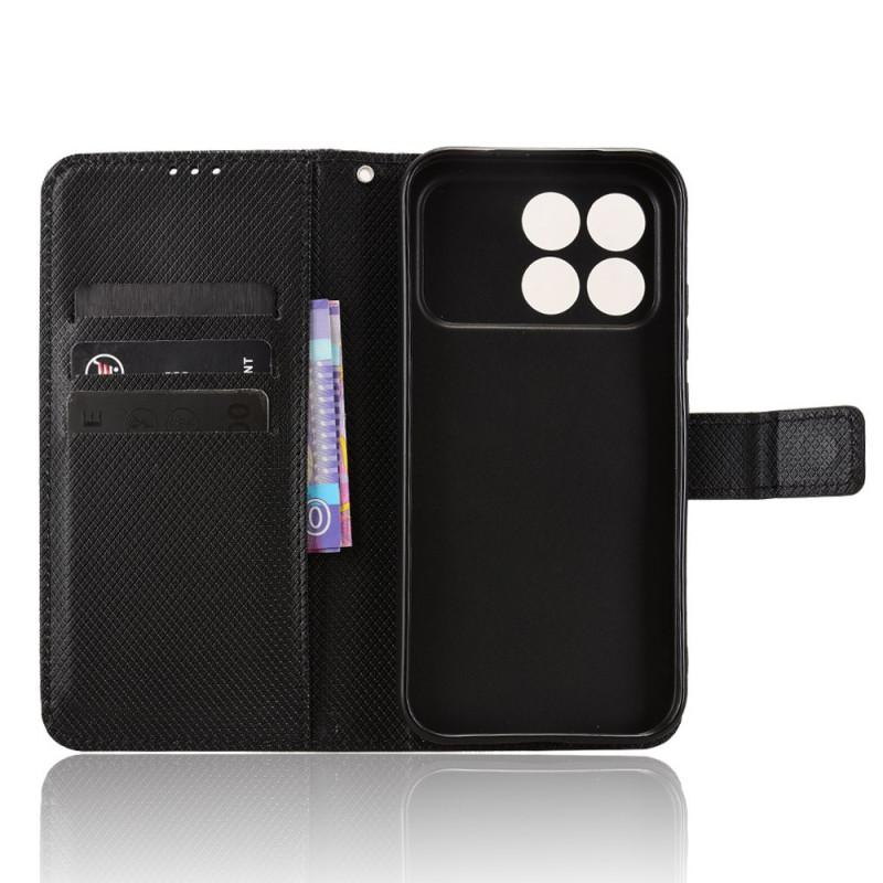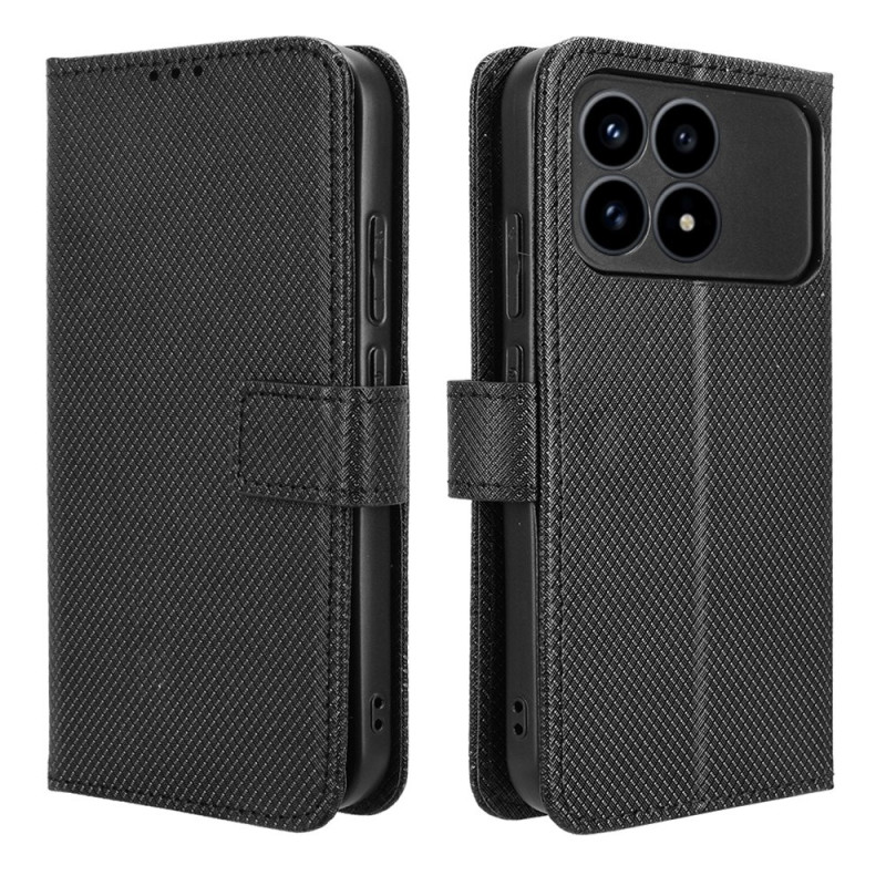 Elegante Brieftasche mit Diamanttextur für Ihr Xiaomi Poco F8 Pro. Ausgestattet mit mehreren Kartenschlitzen, einem Bargeldfach und einer praktischen Handschlaufe. Rundumschutz und Stützfunktion.