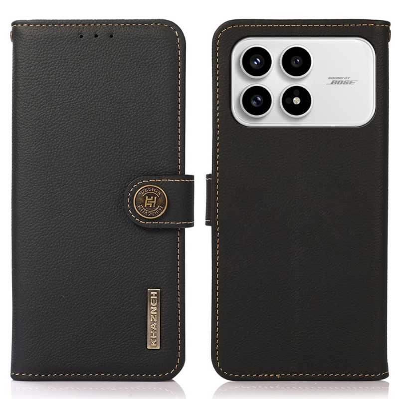 Elegante Brieftasche aus echtem Leder für Poco F8 Pro. Kombinieren Sie Stil und Praktikabilität mit diesem All-in-One-Schutz mit RFID-Abschirmung, einem starken Magnetverschluss und einem integrierten Ständer zum Betrachten Ihrer Inhalte.