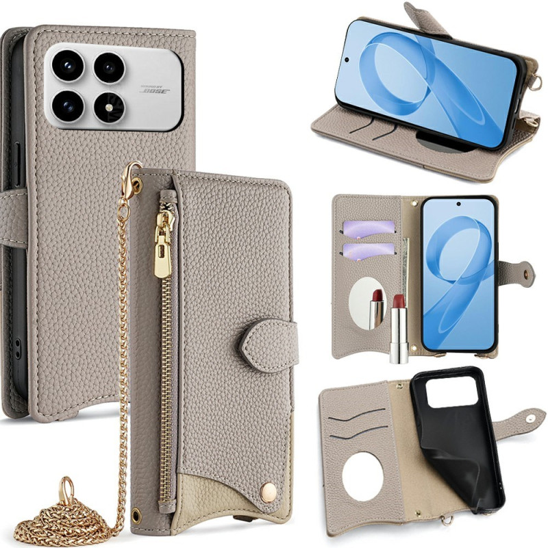 Entdecken Sie unsere multifunktionale Brieftasche für Xiaomi Poco F8 Pro. Sie verfügt über ein elegantes Design mit unregelmäßigem Fischschwanz und kombiniert Premium-Schutz mit praktischen Funktionen wie Kartenfächern, einem integrierten Spiegel und einem Schulterriemen mit Kette.