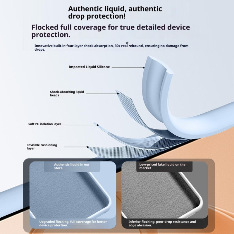 Schützen Sie Ihr Smartphone mit dieser Premium-Hülle aus weichem Flüssigsilikon mit verstärkter PC-Struktur. Sie ist abrieb- und stoßfest und bietet einen Rundumschutz, während der Zugriff auf die Kamera erhalten bleibt und eine hervorragende Wärmeableitung gewährleistet ist.