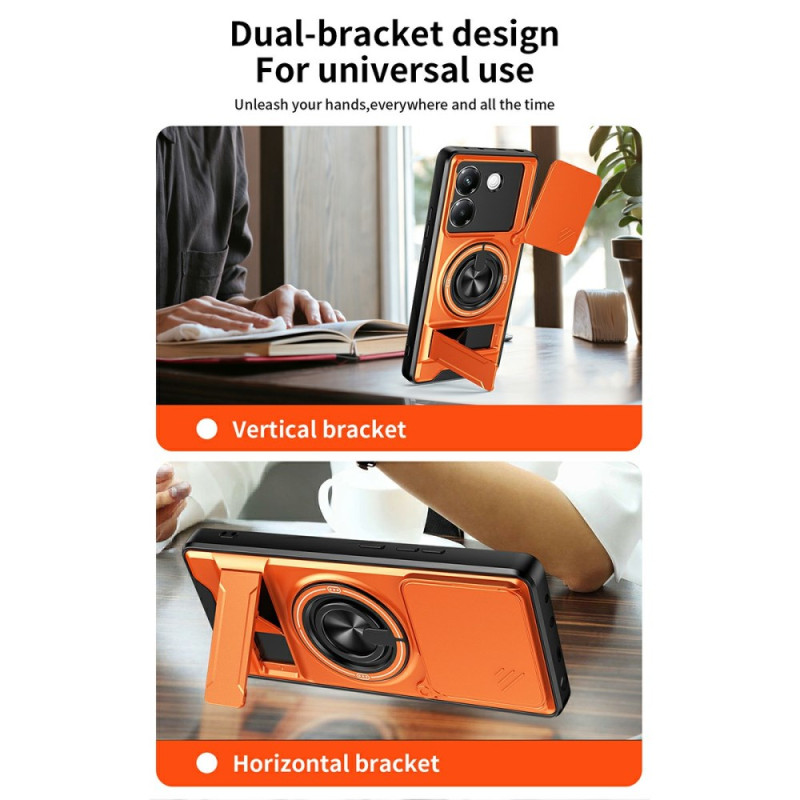 Protégez votre Xiaomi Poco M7 Pro 5G avec cette coque magnétique multifonction. Dotée d'un anneau support rotatif 360°, d'un support pliable pour visionnage mains libres et d'une protection caméra coulissante innovante. Double couche résistante aux chocs.