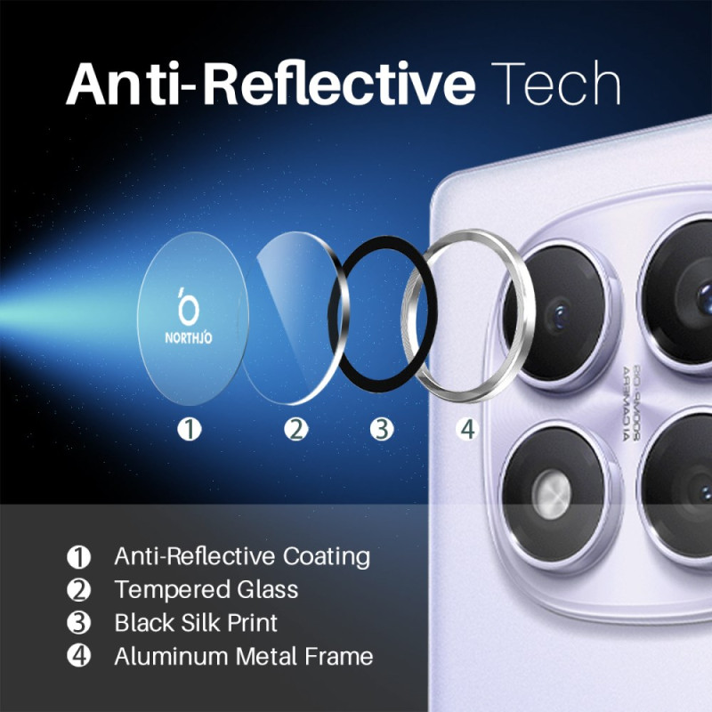 Entdecken Sie unseren Linsenschutz für das Xiaomi Redmi Note 14 Pro. Mit seinem eleganten Design aus Aluminium mit CD-Maserung und 9H gehärtetem Glas bietet er einen effektiven Schutz vor Kratzern und Stößen. Er ist einfach zu installieren, verbessert das Aussehen Ihres Geräts und bewahrt die Klarheit der Linse.