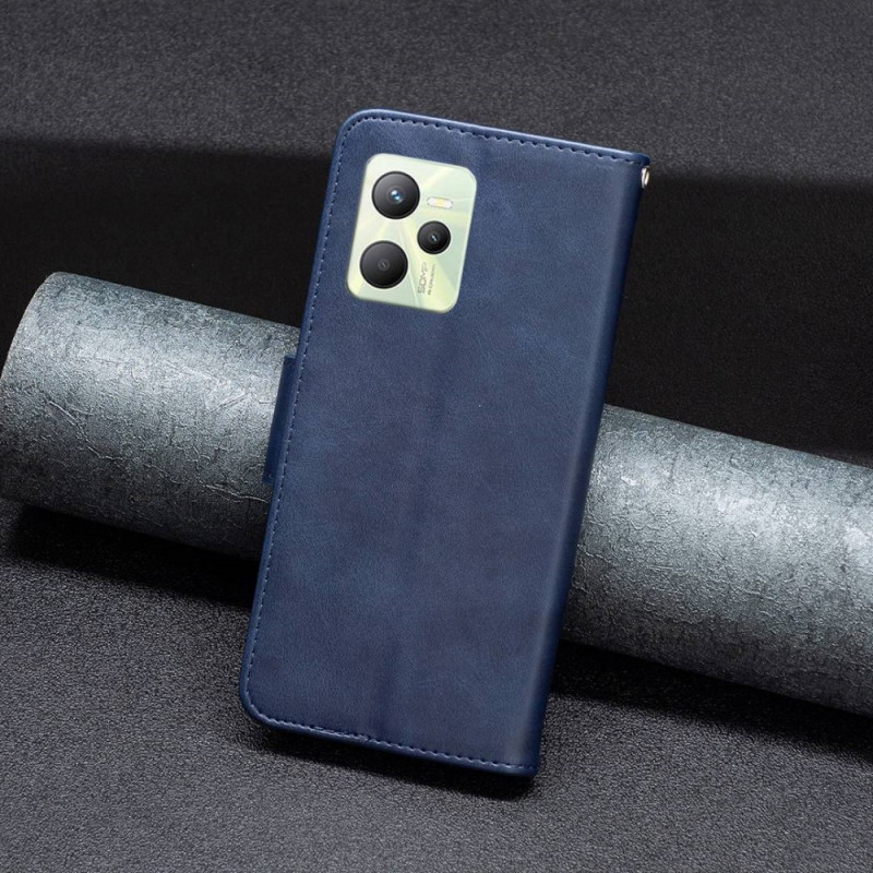 Diese Hülle aus glattem Kunstleder mit schräger Klappe und Riemen ist eine ausgezeichnete Wahl, um sicherzustellen, dass Ihr Realme C35 vor Wind und Wetter geschützt ist.