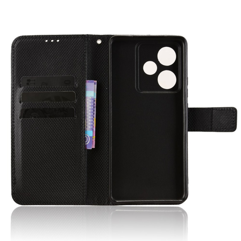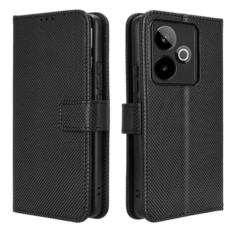 Elegante Brieftasche mit raffinierter Diamanttextur für Ihr Realme GT7 5G. Ausgestattet mit mehreren Kartenfächern, einem Geldscheinfach und einem sicheren Magnetverschluss. Die praktische Handschlaufe erleichtert das Tragen im Alltag.