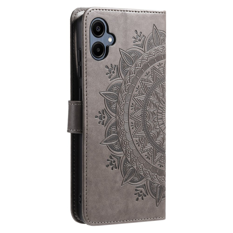 Entdecken Sie diese elegante Brieftasche für Samsung Galaxy A07 5G / 4G. Sie ist aus Premium-PU-Leder mit einer weichen TPU-Hülle gefertigt und bietet umfassenden Schutz, während sie gleichzeitig einen verstellbaren Ständer und Kartenfächer integriert. Raffiniertes Mandala-Design und praktische Handschlaufe im Lieferumfang enthalten.