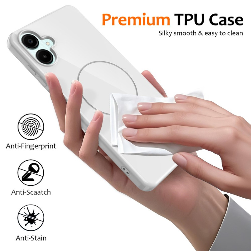 Entdecken Sie unsere hochwertige magnetische Hülle für das Samsung Galaxy A07 4G. Sie ist MagSafe-kompatibel und bietet mit ihren erhöhten Rändern optimalen Schutz für den Bildschirm und die Kamera. Hergestellt aus Premium-TPU ist sie weich, langlebig und widerstandsfähig gegen Wasserflecken. Ihr integrierter Magnetring ermöglicht eine einfache Befestigung an kabellosen Ladegeräten und magnetischen Halterungen...