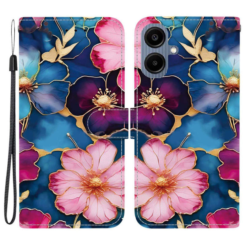 Schützen Sie Ihr Samsung Galaxy A07 5G / 4G / A06 elegant mit dieser Brieftasche mit raffiniertem blau-goldenem Blumenmuster. Mit einem faltbaren Ständer, Kartenschlitzen und einer praktischen Handschlaufe vereint es Stil und Funktionalität für den Alltag.