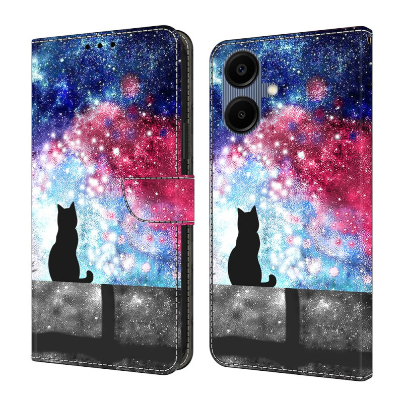 Schützen Sie Ihr Samsung Galaxy A07 5G / 4G stilvoll mit dieser eleganten Brieftasche mit Sternenkatzenmotiv. Mit einem praktischen Klappständer, zwei Kartenfächern und einem sicheren Magnetverschluss vereint es Funktionalität und Stil.