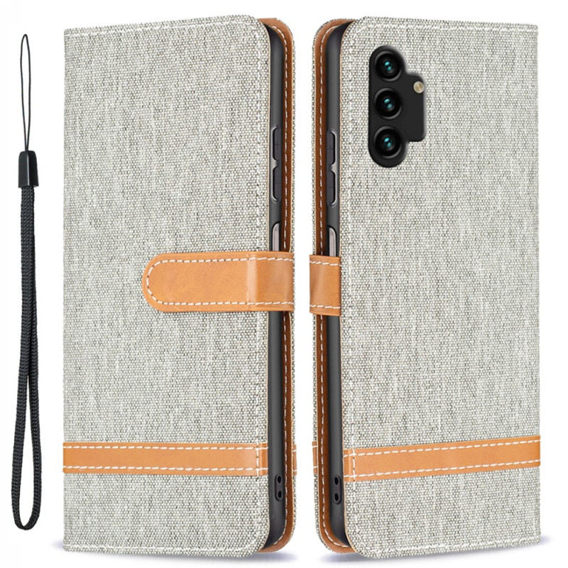 Eine Hülle aus Kunstleder mit Stoffüberzug, die mit einem Riemen kommt, um Ihr gesamtes Samsung Galaxy A13 elegant zu schützen.