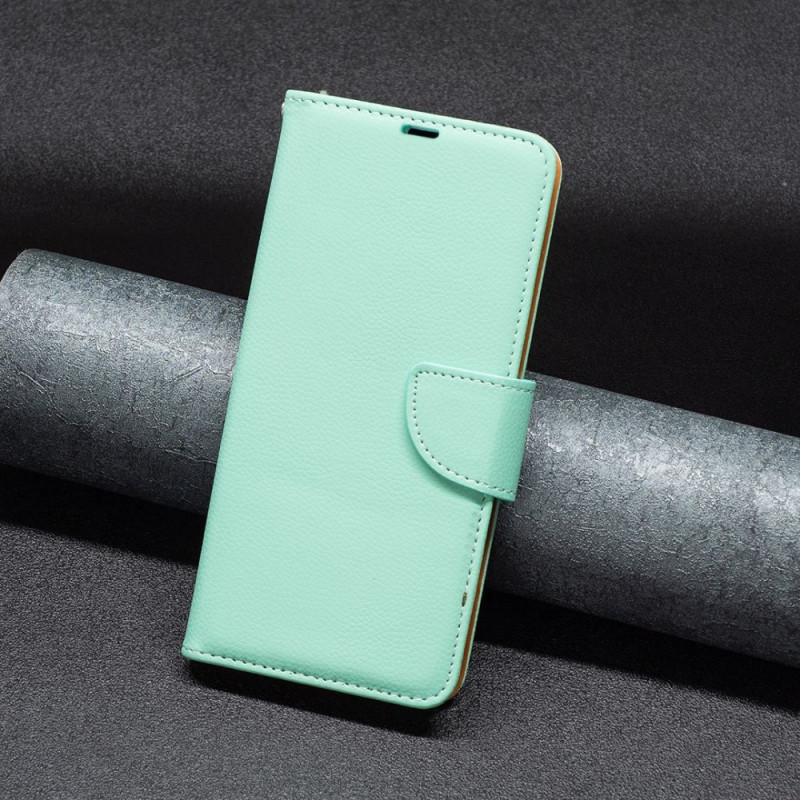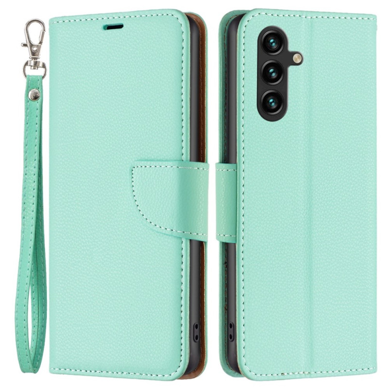 Eine Hülle aus Kunstleder mit schrägem Verschluss, die sich perfekt an das Samsung Galaxy A14 5G / A14 anpasst und mit einem Riemenkommt.