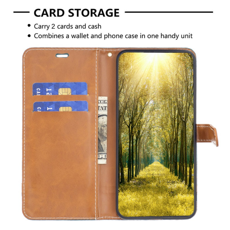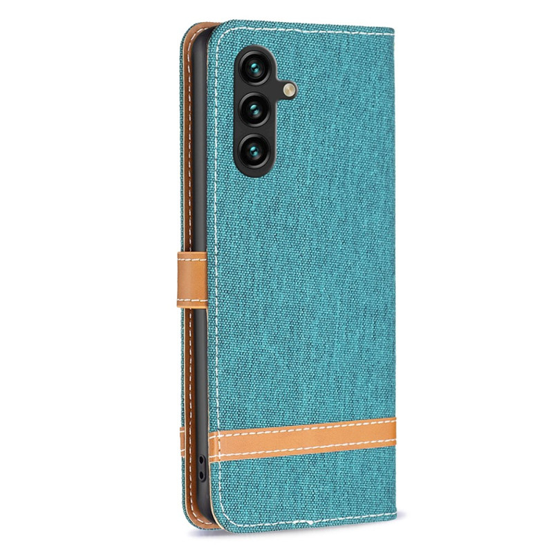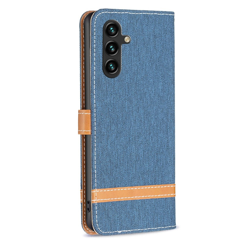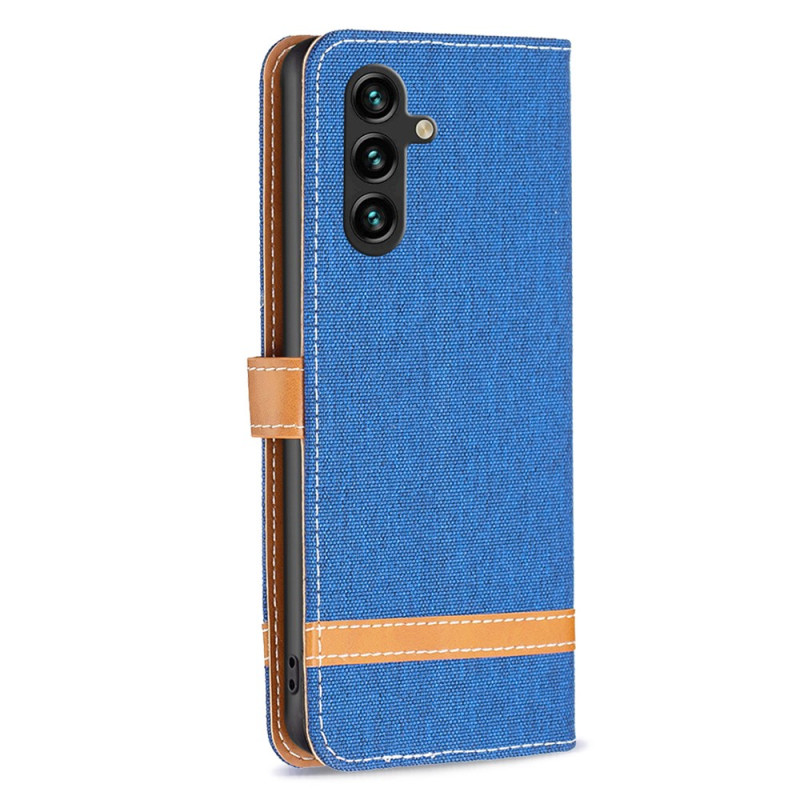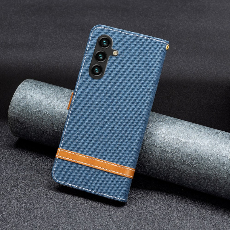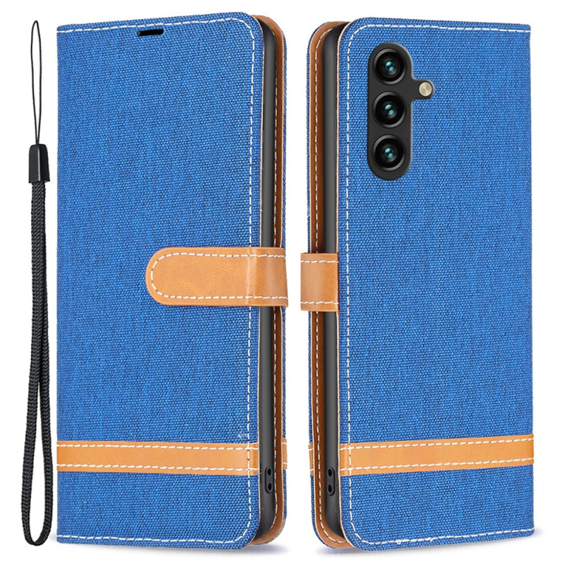 Diese elegante und einzigartige Tasche für das Samsung Galaxy A35 5G bietet mit ihrem kontrastreichen Design und der Jeanshaut doppelten Schutz.