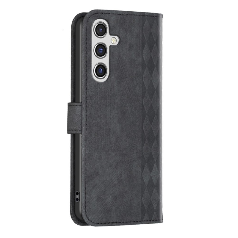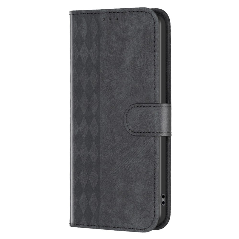 Diese Tasche für das Samsung Galaxy A35 5G ist mit einer hübschen Rautenbordüre versehen.