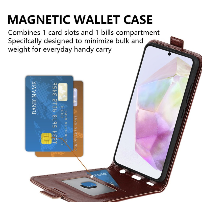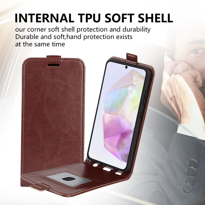 Entdecken Sie unsere elegante vertikale Tasche für Samsung Galaxy A56 5G / A36 5G. Sie ist aus hochwertigem PU-Leder und TPU gefertigt und bietet robusten Schutz und einen anspruchsvollen Look.