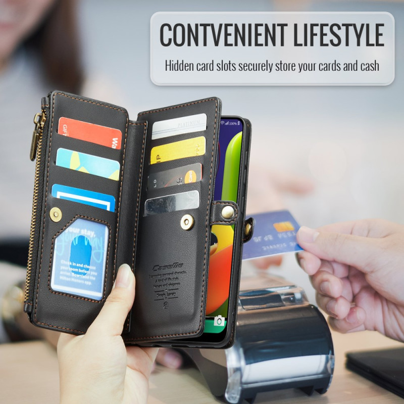 Entdecken Sie unser multifunktionales Etui für Samsung Galaxy. Mit RFID-Schutz, mehreren Transportmöglichkeiten und zahlreichen Fächern vereint dieses Accessoire Sicherheit und Praktikabilität. Sie ist aus hochwertigem PU-Leder gefertigt und bietet außerdem eine Standfunktion und einen Stoßschutz für Ihr Handy.