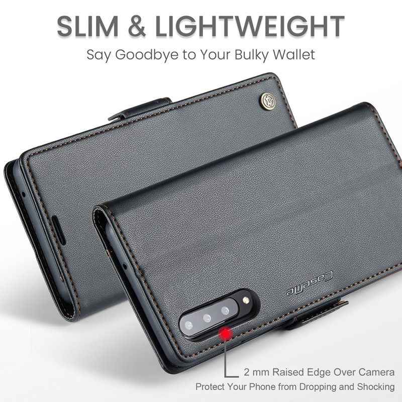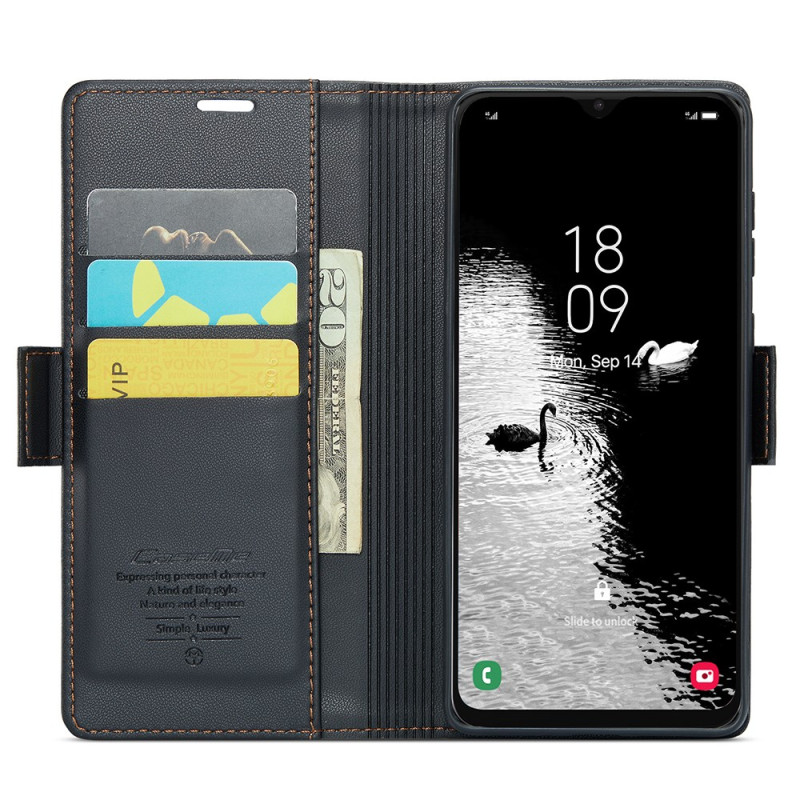 Entdecken Sie unsere hochwertige Lederhülle für das Samsung Galaxy A30s / A50 / A50s. Ausgestattet mit einer fortschrittlichen RFID-Sperrtechnologie bietet sie umfassenden Schutz und dient gleichzeitig als praktische Brieftasche mit 3 Kartenfächern. Der integrierte Ständer ermöglicht eine freihändige Betrachtung, während das elegante Design Funktionalität und Stil vereint.
