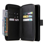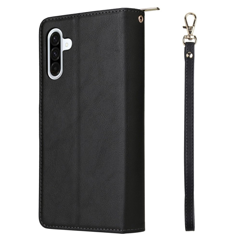 Multifunktionale Tasche aus PU-Leder für das Samsung Galaxy A57 5G. Verfügt über 9 Kartenfächer, ein Reißverschlussfach für Bargeld und eine praktische Handschlaufe. Sicherer Magnetverschluss und integrierte Halterung für die freihändige Nutzung.