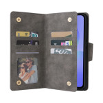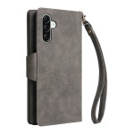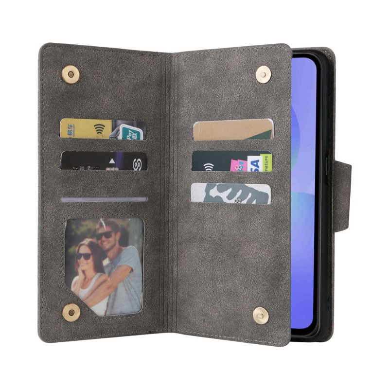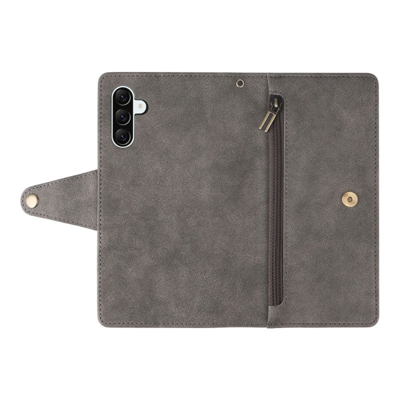 Schützen Sie Ihr Samsung Galaxy A57 5G stilvoll mit dieser Brieftasche aus doppellagigem Leder. Sie ist mit eleganten Nieten verziert und vereint optimalen Schutz mit praktischen Funktionen wie Kartenfächern, einem Reißverschlussfach und einer Handschlaufe.
