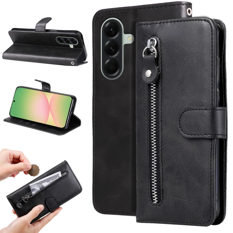 Schützen Sie Ihr Samsung Galaxy A57 5G stilvoll mit dieser multifunktionalen Brieftasche aus Premium-PU-Leder. Mit Kartenschlitzen, einem sicheren Reißverschlussfach und einem faltbaren Ständer vereint diese Tasche Eleganz und Alltagstauglichkeit.