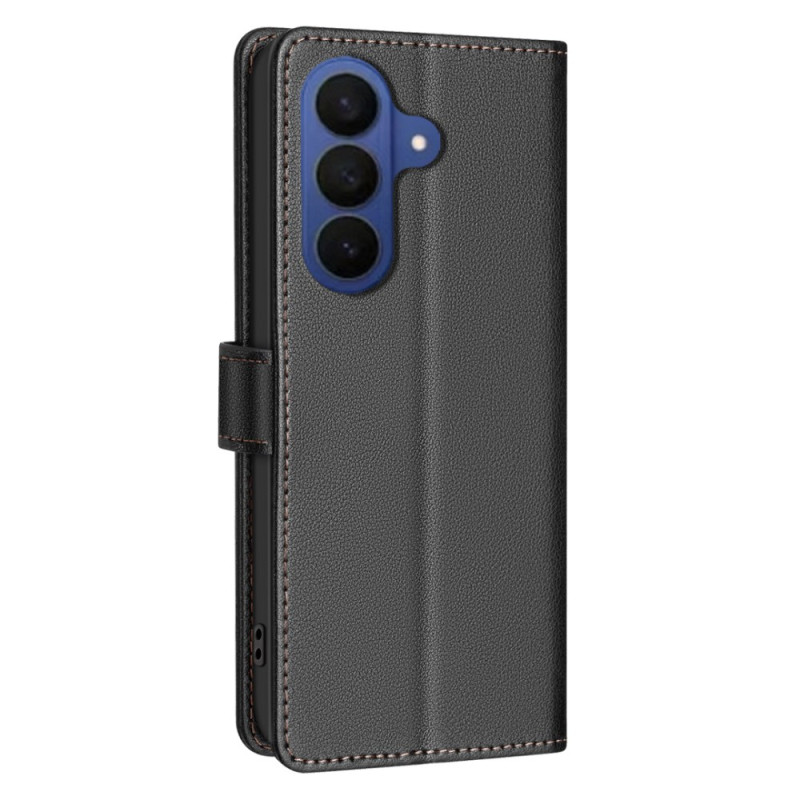 Entdecken Sie Eleganz und Sicherheit mit dieser Brieftasche aus strukturiertem PU-Leder für das Samsung Galaxy A57 5G. Ausgestattet mit der RFID-Sperrtechnologie schützt es Ihre persönlichen Daten und bietet gleichzeitig 3 Kartenfächer und 1 Geldfach.
