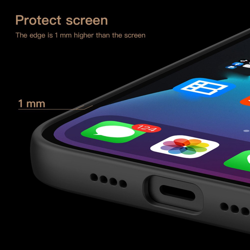 • 1 mm erhöhte Ränder über dem Bildschirm für zusätzlichen Schutz vor Rissen und Kratzern, wenn das Telefon flach hingelegt wird