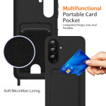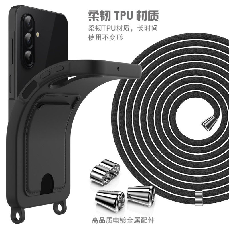 Ultraweiche Hülle aus Flüssigsilikon für Samsung Galaxy A57 5G. Praktisches Design mit integriertem Kartenhalter und verstellbarem 160cm langem Kabel. Verstärkter Schutz der Kamera mit erhöhten Rändern. Einfaches Anbringen und Entfernen, ohne Ihr Handy zu zerkratzen.