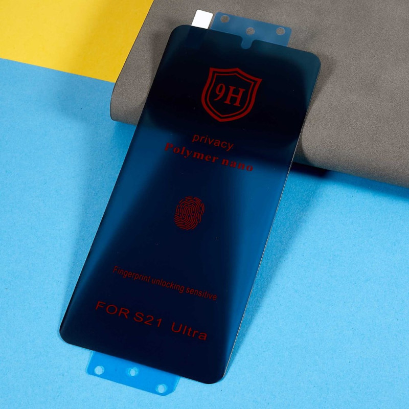 Entdecken Sie unseren Anti-Spionage-Bildschirmschutz für das Samsung Galaxy S21 Ultra 5G. Diese Folie aus Siliziumkarbid bietet einen ausgezeichneten Härtegrad und umfassenden Schutz. Sie schützt Ihr Gerät vor Kratzern, Fingerabdrücken, Wasser und Stößen. Ihre glatte Oberfläche und die einfache Anbringung machen sie zu einem unverzichtbaren Zubehör für Ihr Smartphone.