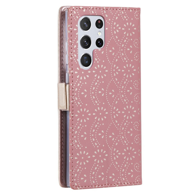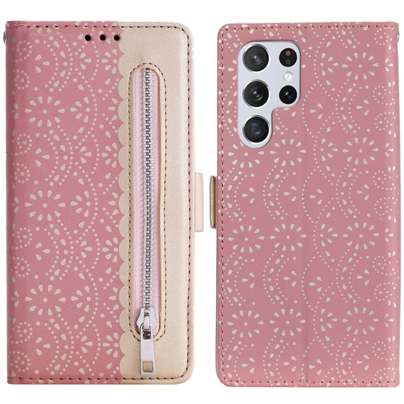 Schützen Sie Ihr Samsung Galaxy S22 Ultra 5G mit dieser Hülle aus Spitze, Geldbörse mit Riemen, die eine multifunktionale Sicherheit mit sehr gutem Design bietet.