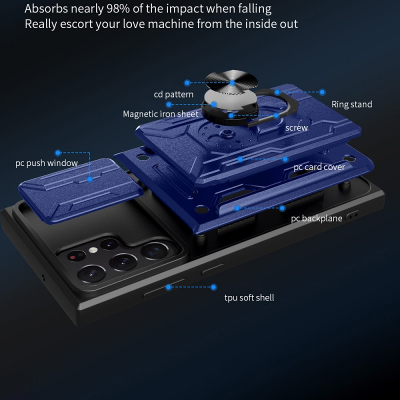 Sichere dein Samsung Galaxy S22 Ultra 5G mit dieser tollen Hülle, die mit einem Tragering und einem Linsenschutz mit Reißverschluss ausgestattet ist.