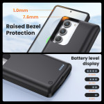 Cette coque batterie de 10000mAh offre une autonomie nettement améliorée au Samsung Galaxy S23 ou S22 5G, tout en garantissant une protection fiable au quotidien. L’indicateur LED à quatre niveaux permet de vérifier rapidement le niveau d’énergie disponible, et la gestion intelligente optimise les cycles de charge pour préserver la durée de vie de la batterie. Sa conception en silicone, PC et ABS assure une solidité accrue, même en usage intensif. Plusieurs circuits de sécurité intégrés préviennent efficacement les surcharges, courts-circuits et risques de surchauffe.