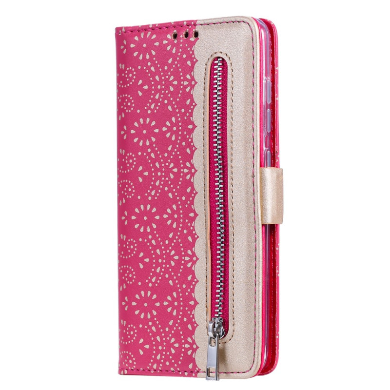 Schützen Sie Ihr Samsung Galaxy S23 5G mit dieser Hülle im Spitzendesign, die über eine Geldbörse und einen Riemen verfügt, die im Alltag sehr praktisch sind.