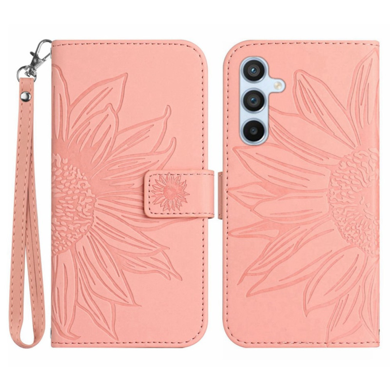 Ihr Samsung Galaxy S23 FE ist in der Sonnenblumenhülle, die mit einem Riemen