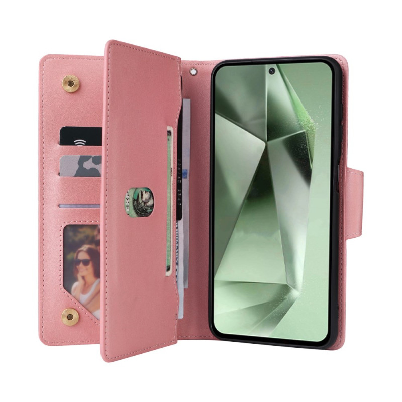 Entdecken Sie unser Etui für Samsung Galaxy S24 FE, das doppelten Schutz mit einer Außenseite aus PU-Leder und einer Innenschale aus weichem TPU kombiniert.