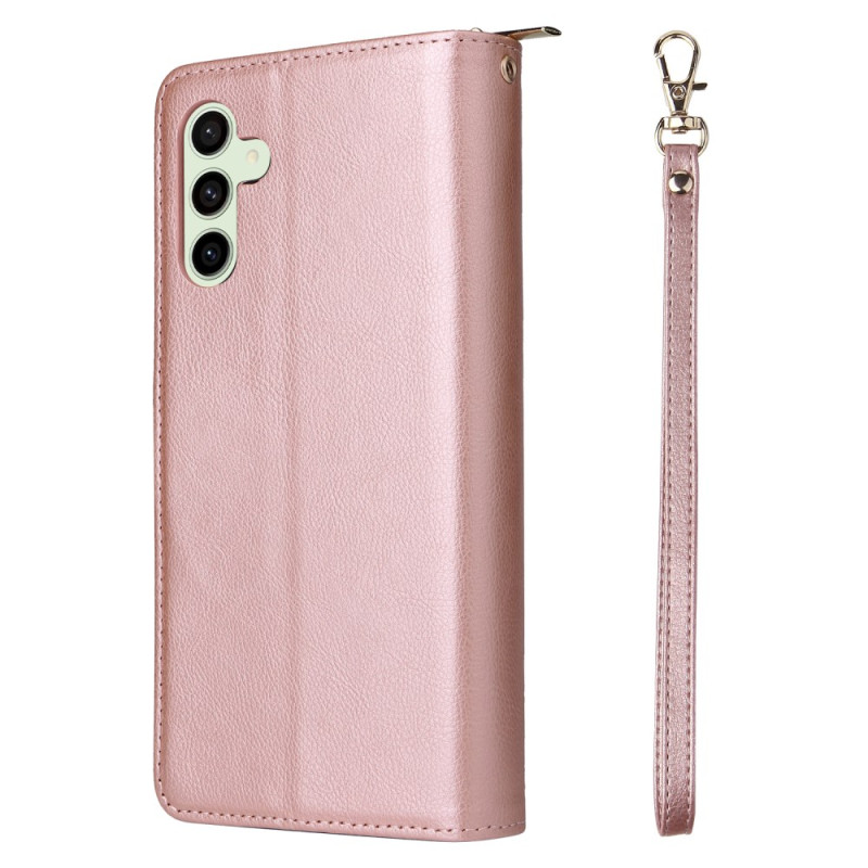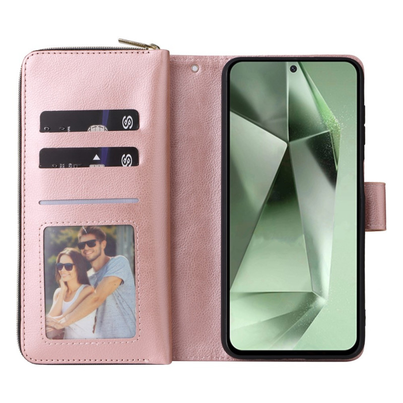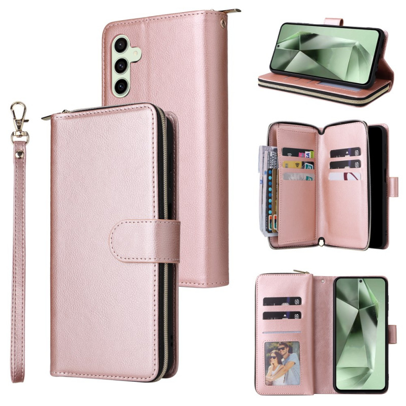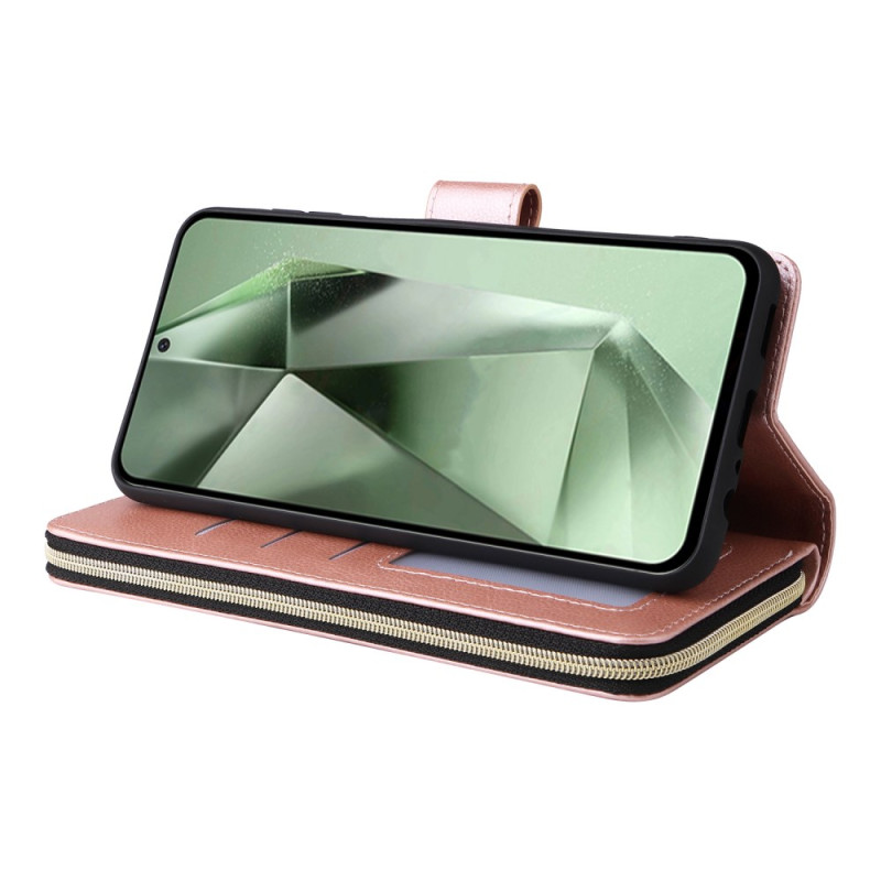 Entdecken Sie unsere Tasche für Samsung Galaxy S24 FE mit einem Reißverschlussfach und einem Umhängeband.ù