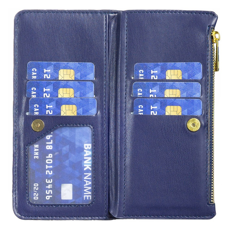 Sie verfügt über Kartenschlitze und ein Geldfach sowie ein Reißverschlussfach für zusätzlichen Stauraum.
