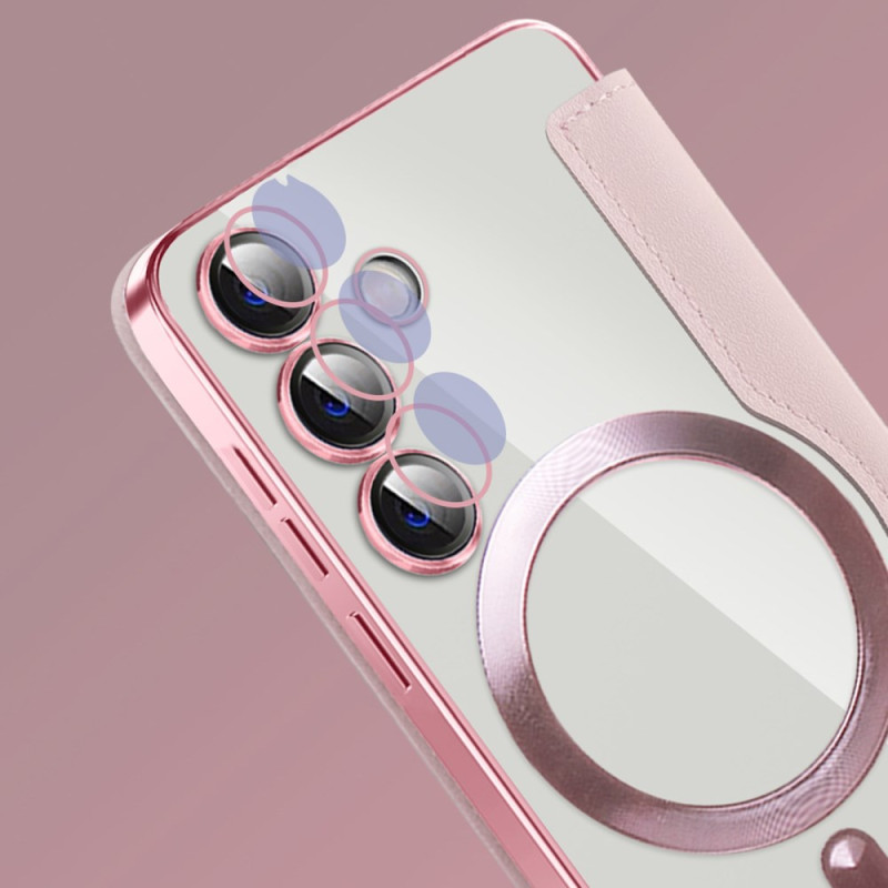 Cette flip cover pour Samsung Galaxy S24 Plus 5G est dotée d'un porte-cartes intégré et offre une protection antichoc.