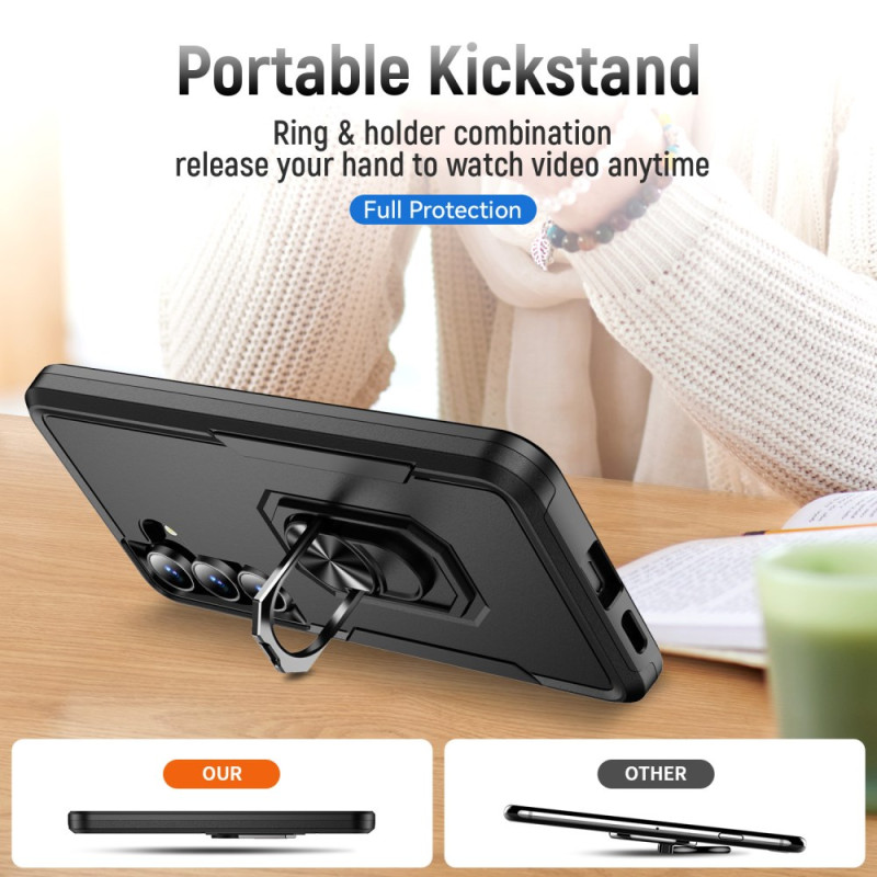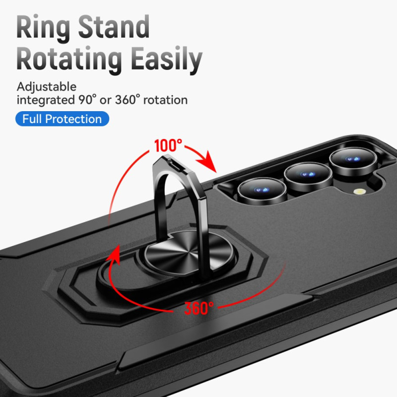 Entdecken Sie unsere militärische Schutzhülle für das Samsung Galaxy S25 FE. Ausgestattet mit einer um 360° drehbaren Halterung und einem robusten Design aus PC und TPU bietet sie optimalen Schutz vor Stürzen. Genießen Sie einen komfortablen Griff und die Kompatibilität mit magnetischen Autohalterungen.
