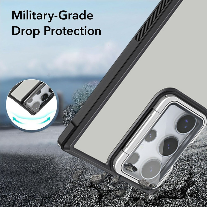 Découvrez notre coque robuste pour Samsung Galaxy S25 Ultra. Alliant PC dur et TPU souple, elle offre une protection militaire contre les chocs.
