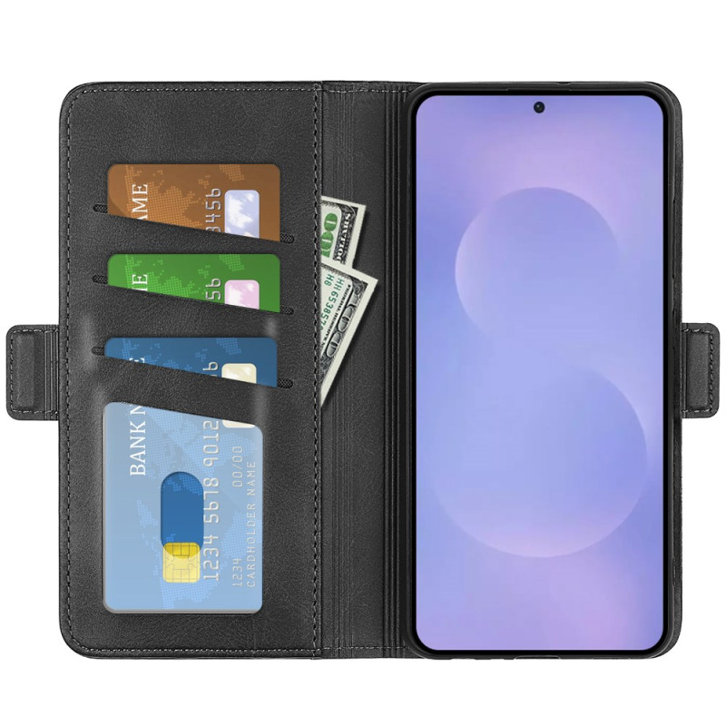 Schützen Sie Ihr Samsung Galaxy S26 elegant mit dieser Brieftasche aus PU-Leder mit Kalbslederstruktur. Praktisches All-in-One-Design mit Kartenfächern, Bargeldfach und verstellbarer Freisprechfunktion.