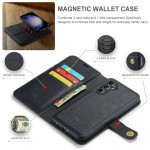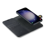Étui 2-en-1 innovant avec portefeuille détachable magnétique et coque arrière amovible. Comprend 3 emplacements pour cartes, une poche pour billets, une fermeture sécurisée par fermoir et un support de visualisation intégré pour une expérience mains libres optimale.
