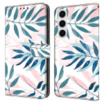 Elegante Klapphülle mit Aquarellblatt-Motiv für Samsung Galaxy S26 Plus 5G. Ausgestattet mit einem faltbaren Ständer, 2 Kartenfächern und einem sicheren Magnetverschluss. Umfassender Schutz vor Kratzern und Stößen im Alltag.