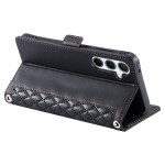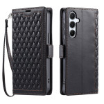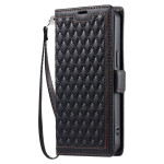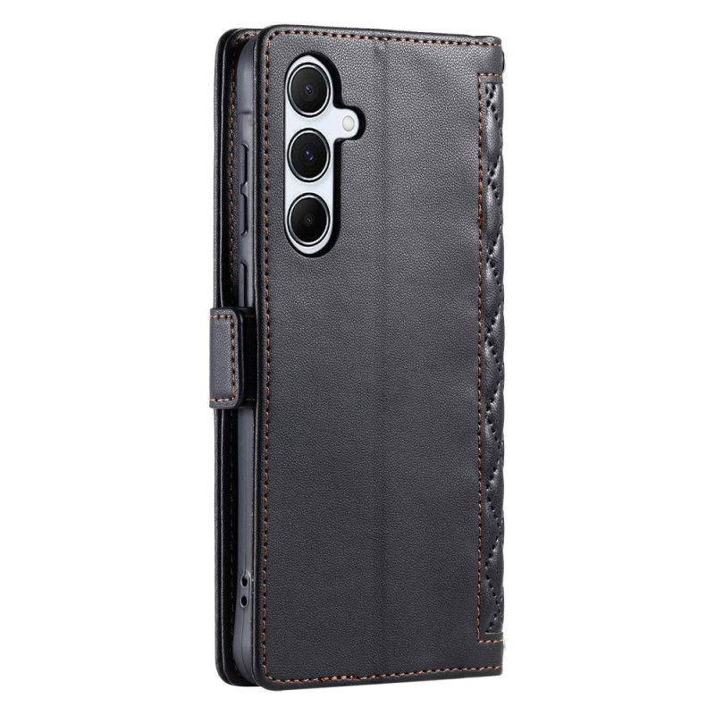 Elegante Brieftasche mit Rautenstruktur für Samsung Galaxy S26 Plus 5G. Ausgestattet mit 3 Kartenfächern, 1 Bargeldfach und einer praktischen Handschlaufe. Integrierte Freisprechfunktion für bequemes Betrachten.