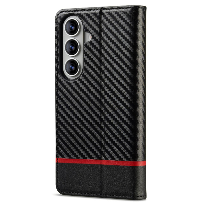 Protégez votre Samsung Galaxy S26 Plus avec style grâce à cet étui portefeuille multifonction. Conçu en cuir PU texturé fibre de carbone, il allie élégance et robustesse. Profitez de 3 emplacements pour cartes et d'un compartiment pour espèces...